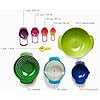 - Reviewed in the United Kingdom on 17 March 2014Colour Name: MulticolourStyle Name: PlasticPattern Name: SingleVerified purchaseSuperb product! What a genius idea! Easy to store and very practical too. I bake and cook a lot. Love the green large bowl. I was expecting my icing to fly all over the place as it usually does when I am trying to cream my butter and sugar together, but it certainly surprised me. The shape of the bowl allows the content of the ingredients to stay in the bowl, whilst being mixed/blended. No more slow pace to blend and flying dust of sugar. Love the sieve and measuring spoons. Even my daughter who assists me in baking find it easy to use when measuring ingredients. Love the non slip base at the bottom of each bowl, just love it!