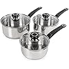 - Reviewed in the United Kingdom on 24 September 2025Style Name: 3 Piece Stainless SteelVerified PurchaseThe pans feel solid and well made, with a nice stainless steel finish that looks smart in the kitchen. They heat evenly and the handles stay cool enough during cooking. The glass lids are handy for keeping an eye on food, and they’re easy to clean.