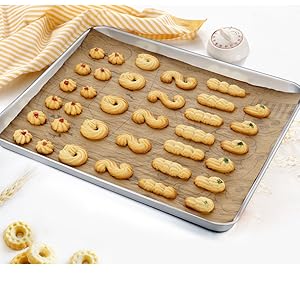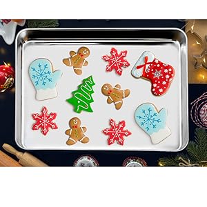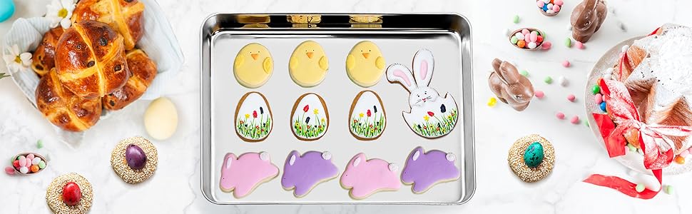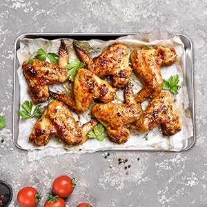 - √ EXQUISITE CRAFT - Our baking tray is processed with superb mirror finish so its surface can decrease the risk of sticking; Smooth roll edge without rough spots make it comfortable to hold and transfer