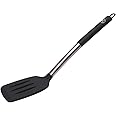 Starchef Silicone Slotted Turner Spatula Heat Resistant Non-Stick Soft Grip, Stainless Steel(Black)