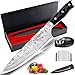 - 【High Carbon German Stainless Steel Laser-engraved Pattern(Not Damascus Pattern )】 MOSFiATA 8 inch pro chef's knife is made of premier high carbon German EN1.4116 stainless steel with high strength and increased rigidity. The kitchen knife contains 0.45-0.55% carbon, twice hardness than other knives, which will maintain longer sturdiness function.Laser-engraved pattern on the blade surface for decoration & anti-sticking.(NOTE: Different from Damascus pattern! Don't be confused!)