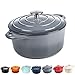 Round Casserole Dish - Cast Iron Ceramic Induction and Gas Safe Non Stick Dutch Oven Roasting Cooker - with Lid - 10 Year Gurantee (2.7L Casserole, Grey)