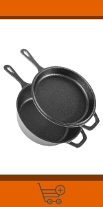 - EXTREMELY VERSATILE - You can use our premium pre-seasoned cast iron cookware over any heating source effortlessly! Since it evenly distributes heat they can be used to sear, fry, saute, grill, roast, bake, braise and broil . You can use it on a stove top or in an oven indoor or even a campfire outdoors with the same incredible results!
