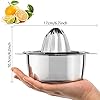 Product includes: Generous capacity lemons Squeezer with lid . Size: 17cm x 10.7cm. Material: Stainless steel. Use for oranges and lemons Large bottom tray to hold fresh juice. High quality and easy to clean.