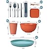 - 【Lightweight Tableware sets】48 pieces camping set for 4 people, contains 4 pieces each. 15 cm large bowls x 4, 22.5 cm large salad plates x 4, 14.5 cm dessert plates x 4, 400ml cup x 4, color knife, fork, spoon and chopsticks combination x 4, 10cm fruit forks x12.