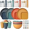 Product Summary: 48pcs Unbreakable Dinnerware Sets for 4 People, Camping/Picnic Dinner Sets, Lightweight Colorful BBQ Plastic Serving Plates, Bowls, Cups,Cutlery Set, Forks,Tableware