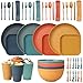 48pcs Unbreakable Dinnerware Sets for 4 People, Camping/Picnic Dinner Sets, Lightweight Colorful BBQ Plastic Serving Plates, Bowls, Cups,Cutlery Set, Forks,Tableware