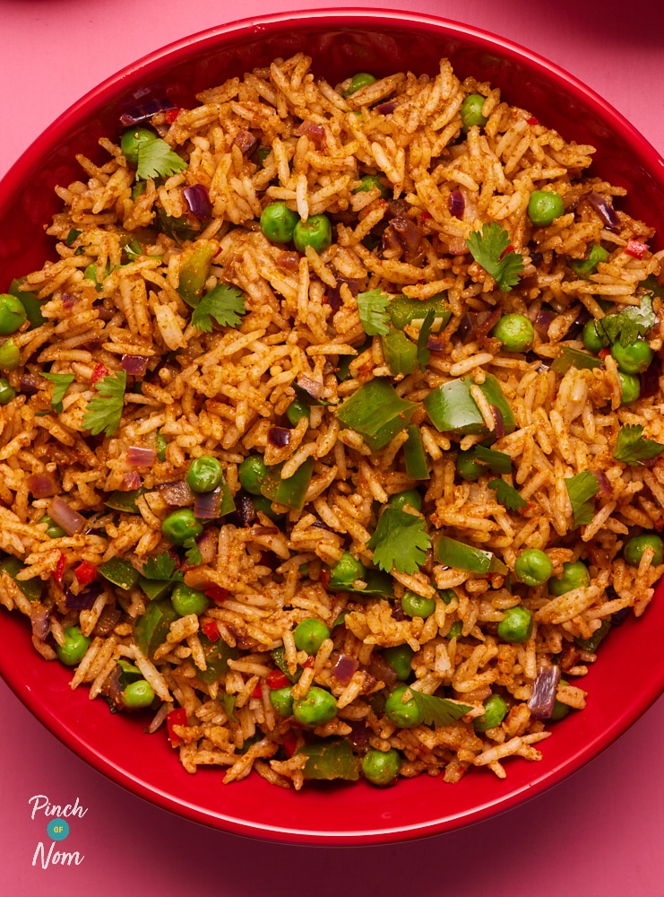 This Mexican-Style Rice works as both a simple side and a hearty main course. You could serve it as a slimming side for a buffet, or make it a day ahead of time to take to work. It also makes a great addition to a Tex-Mex fakeaway – add it to fajitas, or serve it as a side to our Mexican Chilli Beef.