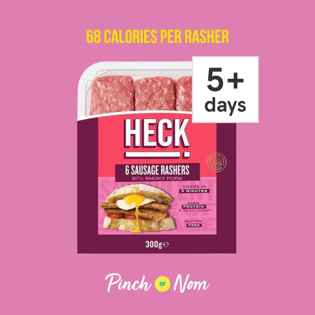 Love a good sausage sarnie but looking for something lighter? These Smoky Pork Sausage Rashers from Heck are just 68 calories per rasher. Pop them in a bun or in your weekend fry-up!