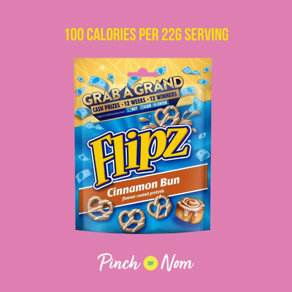 Flipz Cinnamon Bun Flavour Coated Pretzel Snacks – 100 calories per 22g serving