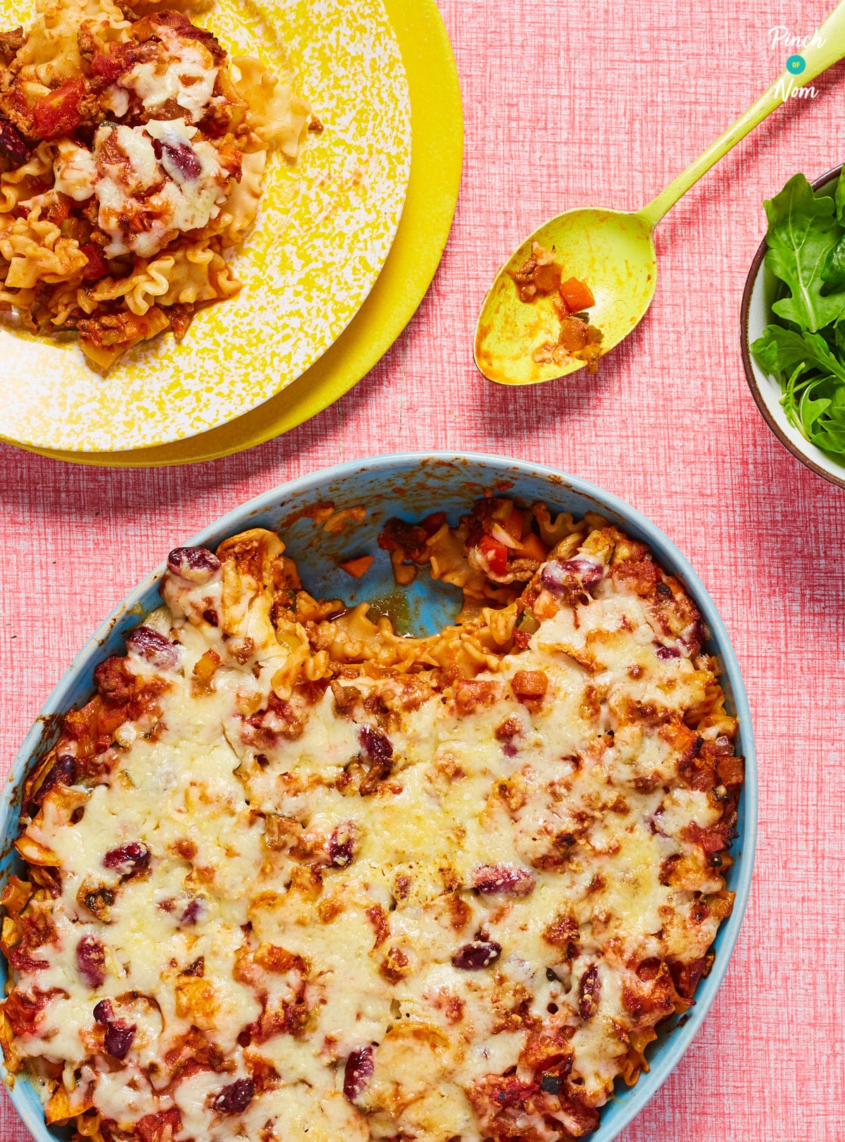 This is a real crowd-pleaser of a recipe, one the whole family will love. Mine gave it a big thumbs up when I made it recently! A combination of lasagne and chilli that is 662 calories per portion.
